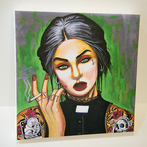 Canvas prints are 9 inch x 9 inch stretched over a wooden stretcher frame.