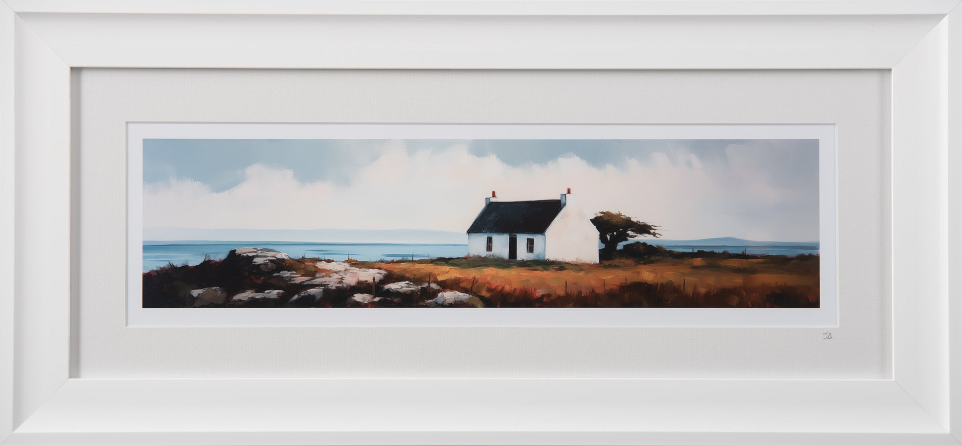 Giclee print by Donegal artist Josephine Bell. Framed with white mount and concave white frame